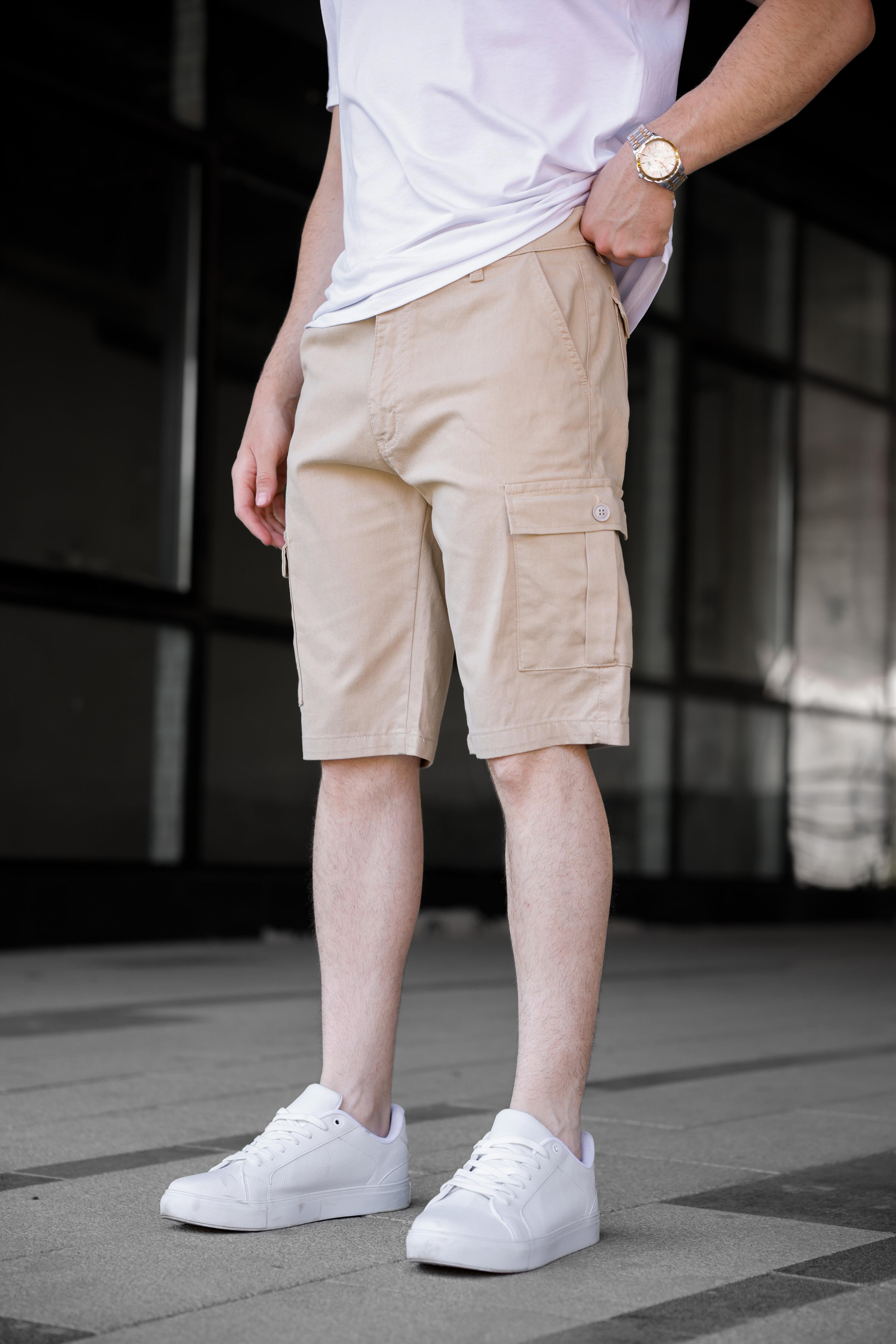 Bej Renk Kargo Cepli Gabardin Erkek Şort
