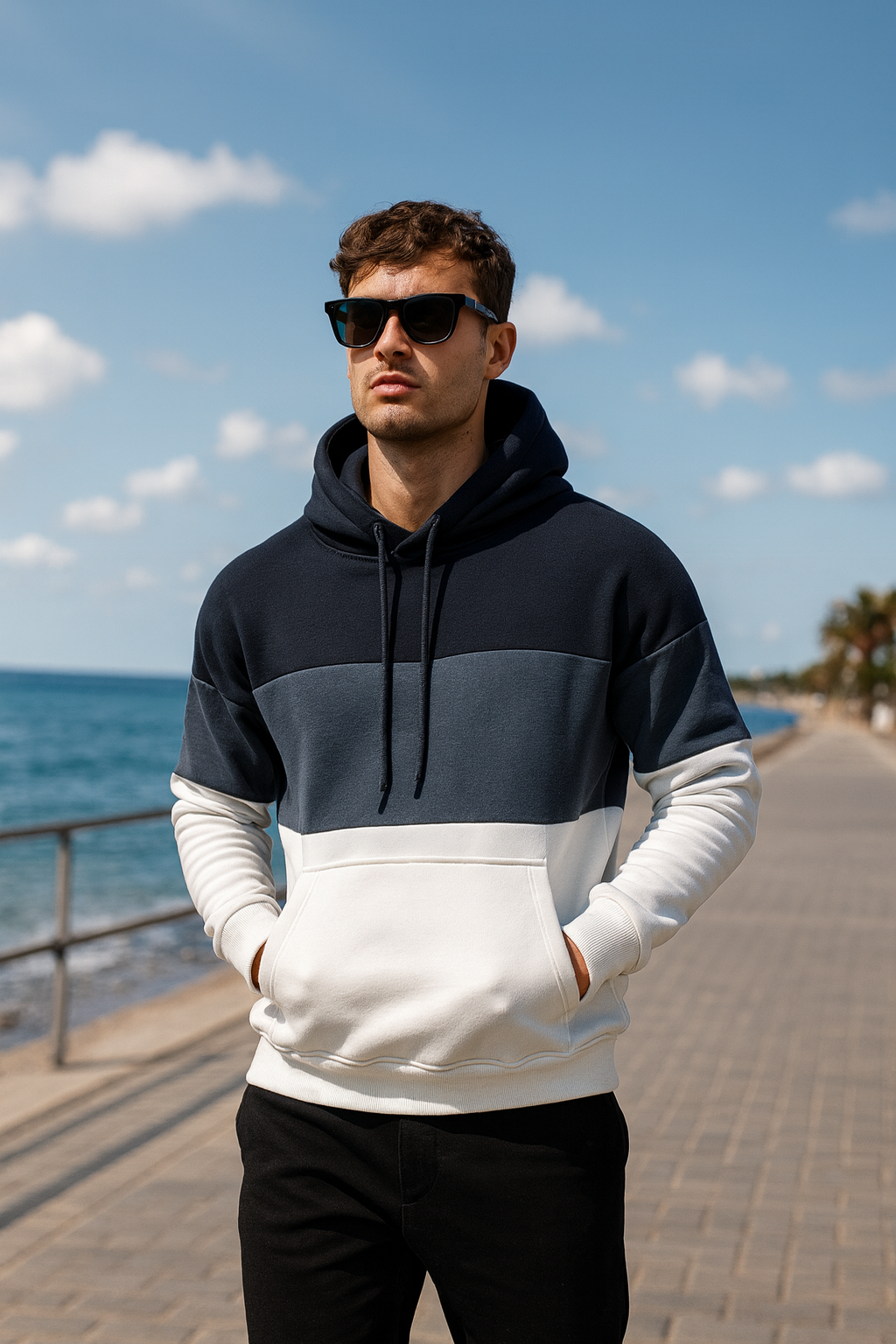 Oversize Siyah Renk Füme Şeritli Kapüşonlu Eşofman Takımı